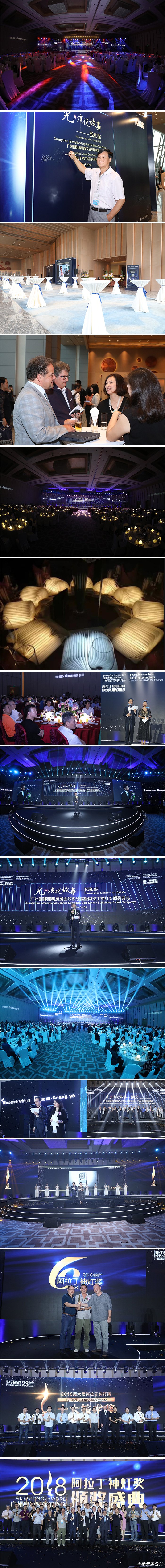 6月9日,一年一度的廣州國際照明展覽會(光亞展)如期開幕。廣東豐揚天思文化傳播有限公司有幸再次攜手主辦方打造本次盛會。晚上18:00時,以“光演說故事——我和你 ”為主題的2018廣州國際照明展覽會歡聚晚宴 暨 阿拉丁神燈獎頒獎典禮在展館附近的廣州朗豪酒店正式舉辦,近600位照明行業重量級嘉賓出席了本次晚宴。