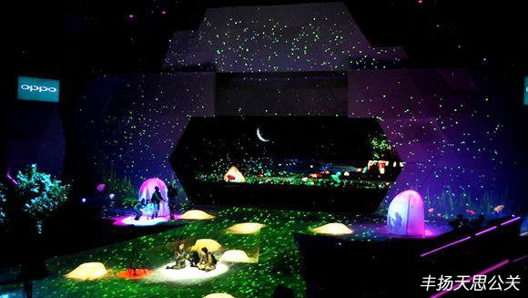 舞臺(tái)后區(qū)的全息影像結(jié)合舞臺(tái)前區(qū)投影,立體呈現(xiàn)了一個(gè)極具縱深感的郊外夜景。