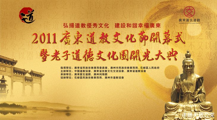 12月10日上午,位于花都區(qū)的廣東圓玄道觀內(nèi)高道云集,群賢畢至,豐揚(yáng)天思(廣州)公司執(zhí)行策劃的“2011廣東道教文化節(jié)開(kāi)幕式暨老子道德文化園開(kāi)光大典”在這里隆重舉行。活動(dòng)由中國(guó)道教協(xié)會(huì)、廣東省宗教文化交流協(xié)會(huì)、廣東省道教協(xié)會(huì)共同主辦,廣東圓玄道觀、廣州純陽(yáng)觀承辦,其中還包括盆景及菊花藝術(shù)展、第十一屆道教音樂(lè)匯演、道教書(shū)畫(huà)展、問(wèn)道養(yǎng)生講座等系列活動(dòng)。
